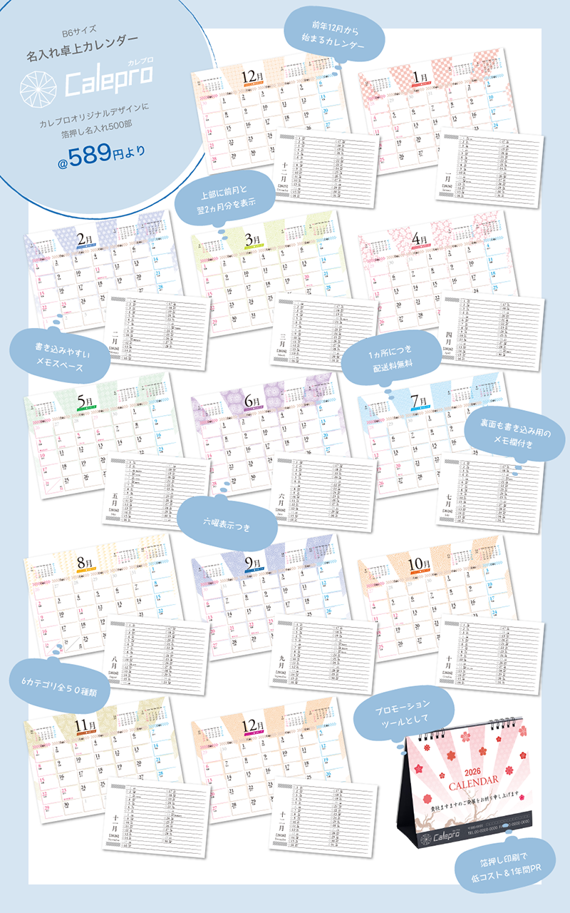 ネットで受注販売している企業様向けB6サイズの卓上カレンダーのご紹介です。
