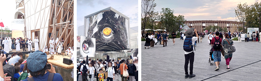 途中パビリオンの様子を見ながら歩いたが、人も多くなり、どのパビリオンも大行列になっていた。