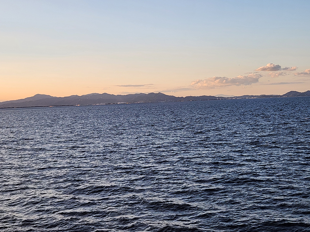時計を見るともう15時前。16時40分のフェリーを逃すと帰りが遅くなるので、徳島港へ戻る。さすがに帰りの歩きはこたえたが、何とか徳島港に到着。帰りの船はちょうど夕陽の時間。展望デッキから見る夕暮れの海はきれいだった。朝から行き当たりばったりで動いたのに、結果的に完璧な飲んで食べただけの一日だった。